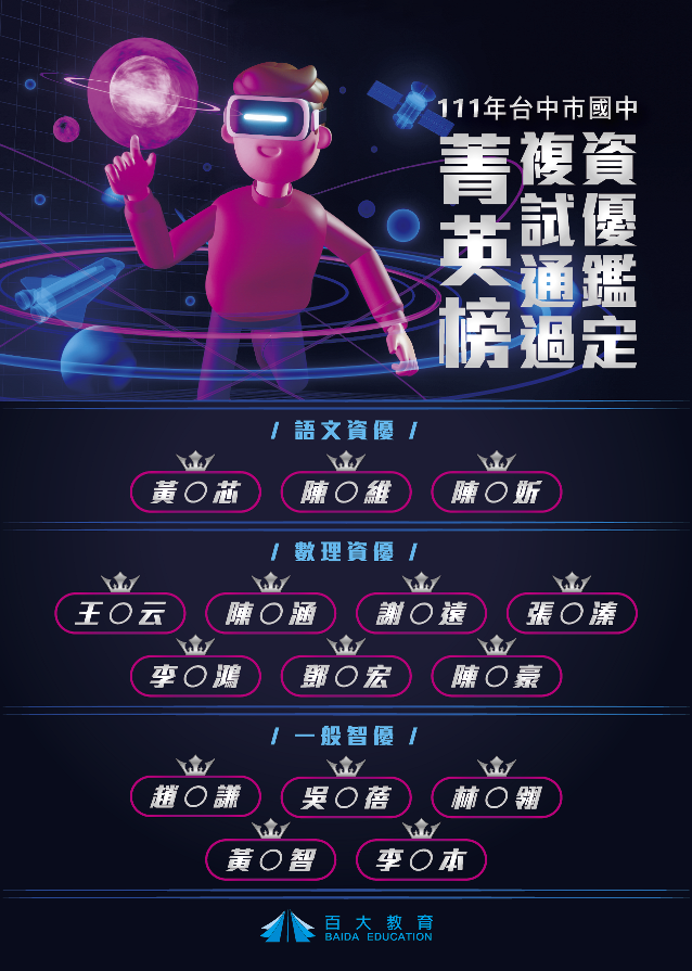 111國一資優鑑定複試通過榜單