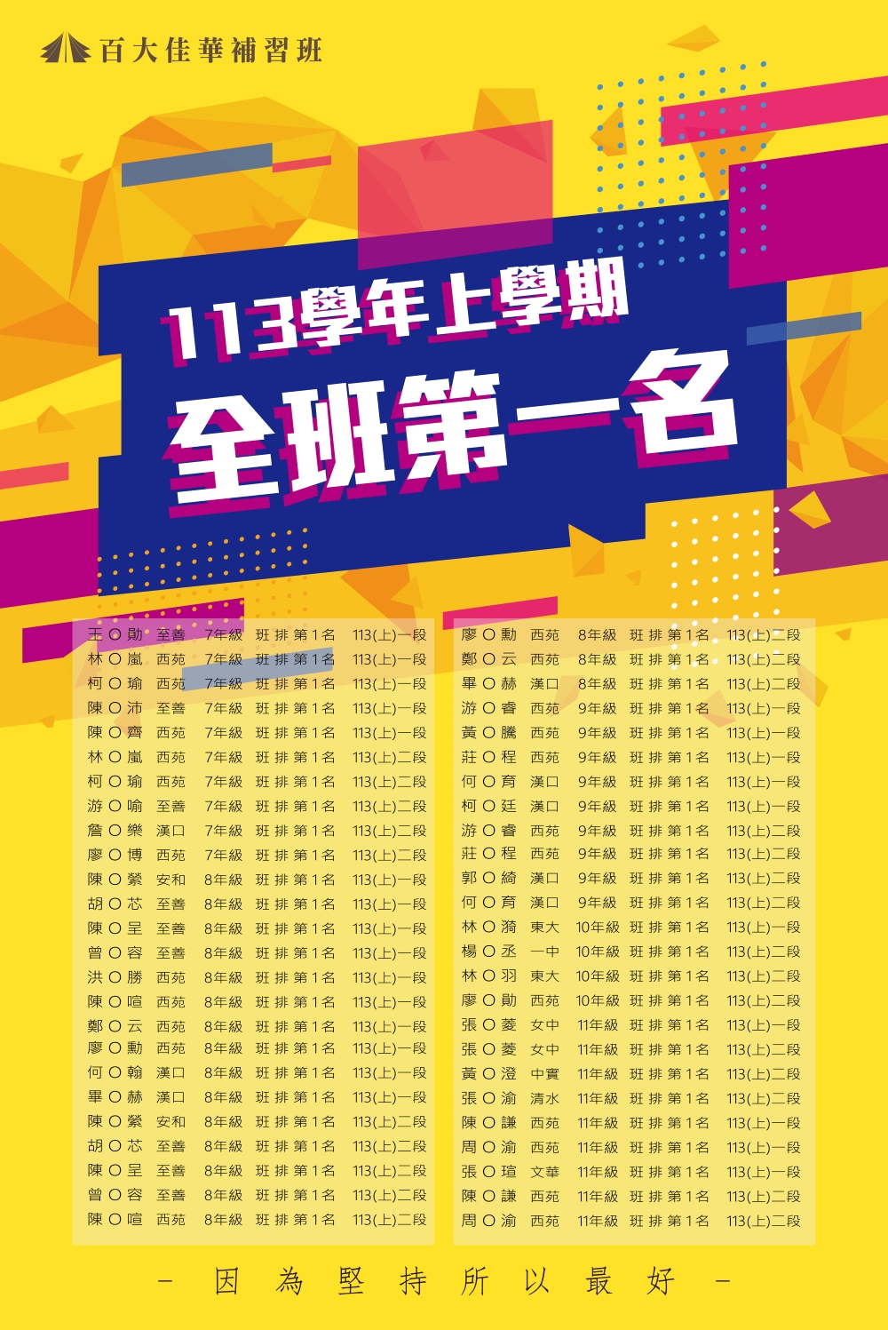 113學年 百大佳華 班排菁英榜